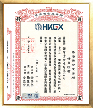 - 香港黄金交易所行员证书 (行员编号:145号)